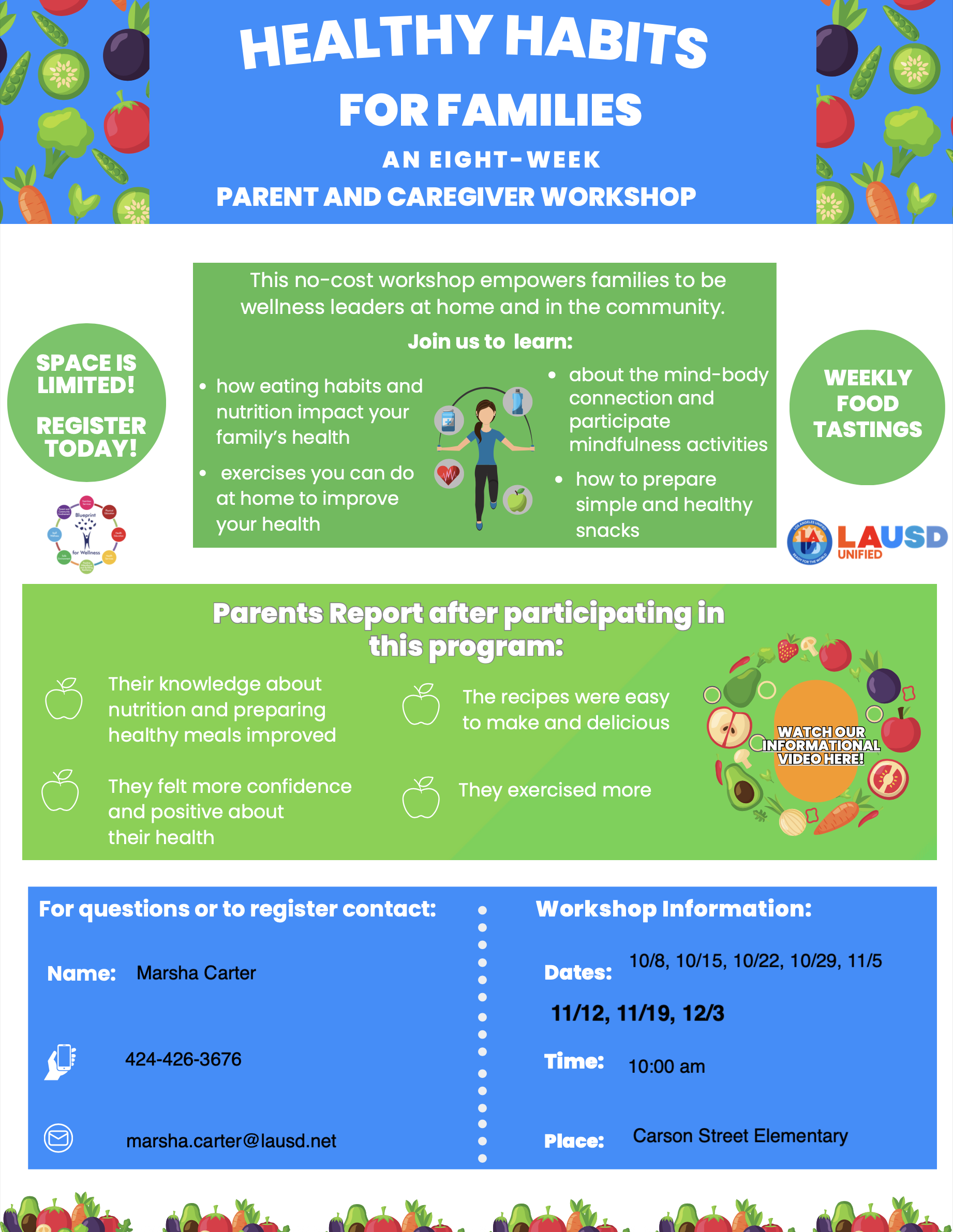 HEALTHY HABITS FOR FAMILIES - Parent and Caregiver Workshop Attached Files Carson STREET Healthy Habits flyer.pdf